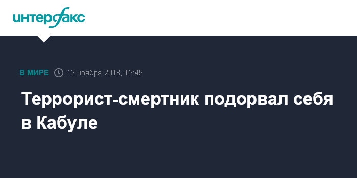 Москва. 12 ноября. INTERFAX.RU - Террорист-смертник в афганской столице в понедельник привел в действие мощную бомбу, передает афганский телеканал "Толо".