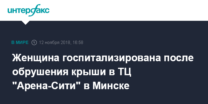 Женщина госпитализирована после обрушения крыши в ТЦ "Арена-Сити" в Минске