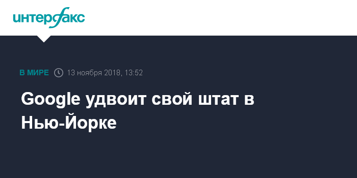 Москва. 13 ноября. INTERFAX.RU - Холдинг Alphabet и его дочерняя компания Google планируют расширить штат в Нью-Йорке вдвое в ближайшие 10 лет, заявила финансовый директор компаний Рут Порат на конференции WSJ Tech D.Live.