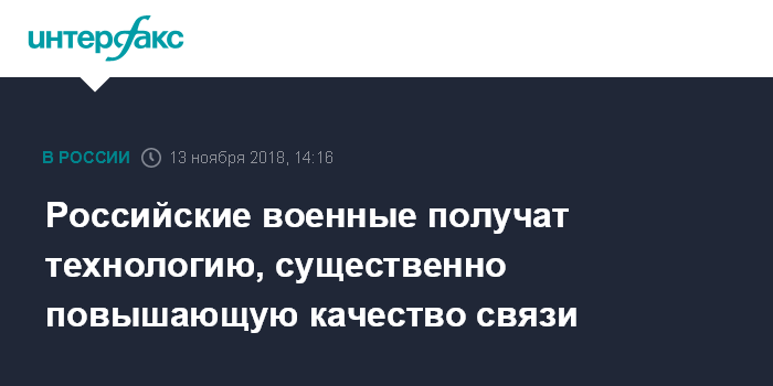 Москва. 13 ноября. INTERFAX.RU - Для российских военных разработали новую технологию, существенно улучшающую качество связи, сообщили "Интерфаксу" в пресс-службе холдинга "Росэлектроника" (входит в "Ростех").
