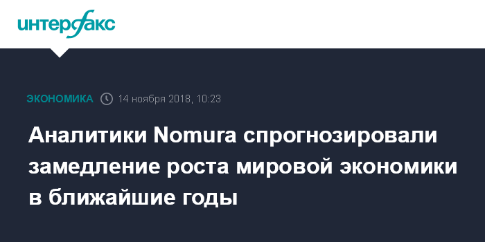 Москва. 14 ноября. INTERFAX.RU - Рост глобальной экономики будет замедляться в ближайшие годы, однако не слишком сильно, прогнозируют аналитики японской финансовой холдинговой компании Nomura.