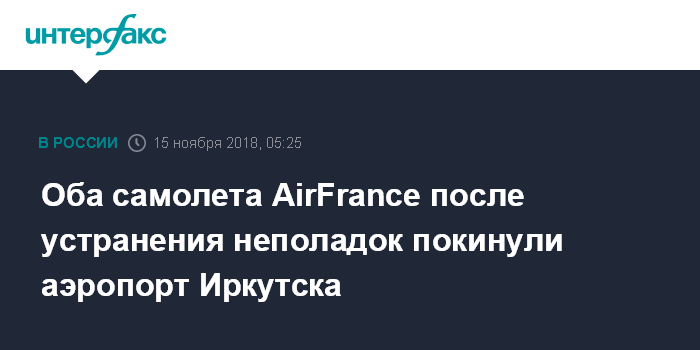 Оба самолета AirFrance после устранения неполадок покинули аэропорт Иркутска