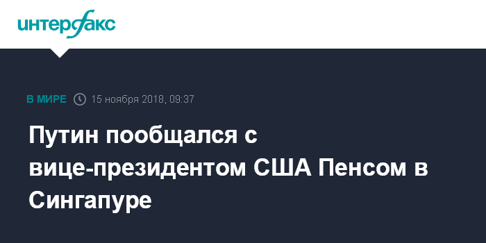 Путин пообщался с вице-президентом США Пенсом в Сингапуре