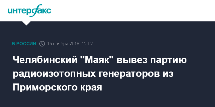 Челябинский "Маяк" вывез партию радиоизотопных генераторов из Приморского края