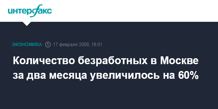 Количество безработных в Москве за два месяца увеличилось на 60%