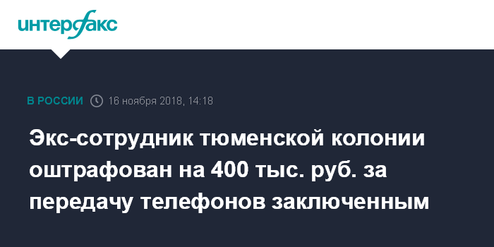 Экс-сотрудник тюменской колонии оштрафован на 400 тыс. руб. за передачу телефонов заключенным