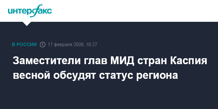 Москва. 17 февраля. INTERFAX.RU - Переговоры о статусе Каспийского моря пройдут в Москве в марте-апреле этого года, сообщил спецпредставитель президента России по делимитации и демаркации государственной границы РФ с сопредельными государствами-участниками СНГ Александр Головин.