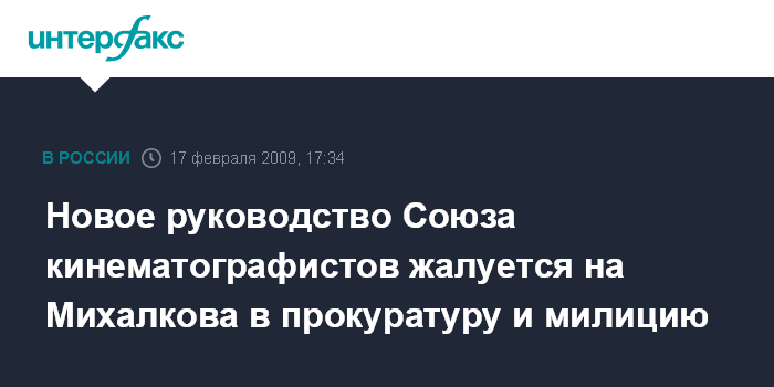 Москва. 17 февраля. INTERFAX.RU - Представители избранного председателя Союза кинематографистов России Марлена Хуциева пожаловались в правоохранительные органы на незаконную, по их мнению, деятельность бывшего председателя союза Никиты Михалкова на своем посту после истечения полномочий.