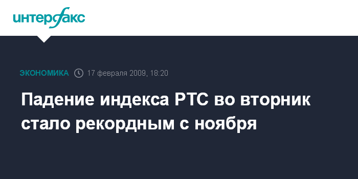 Москва. 17 февраля. INTERFAX.RU - Падение индекса РТС во вторник стало рекордным с ноября прошлого года, индикатор потерял за день 9,4%, рухнув до 552,03 пункта.