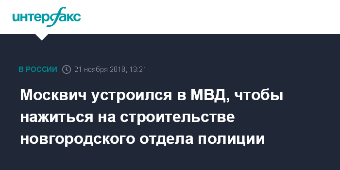 Москвич устроился в МВД, чтобы нажиться на строительстве новгородского отдела полиции