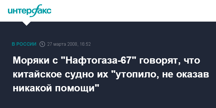 Сянган. 27 марта. INTERFAX.RU - Спасшиеся моряки с украинского буксира "Нафтогаз-67" заявляют, что китайское судно, которое столкнулось с ними, проследовало мимо, не отреагрировав на их вызовы.