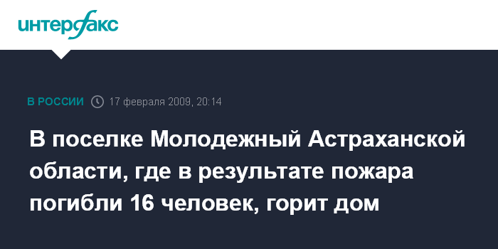 Ростов-на-Дону. 17 февраля. INTERFAX.RU - Трехэтажный жилой дом горит в поселке Молодежный (Астраханская область), где ранее уже произошел пожар, унесший жизни 16 человек, сообщили агентству "Интерфакс" в пресс-службе ЮРЦ МЧС России во вторник.