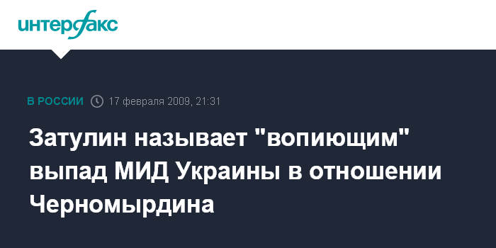 Москва. 17 февраля. INTERFAX.RU - Заявление МИД Украины о возможности объявить Виктора Черномырдина "персоной non grata", означает, что официальный Киев переходит все цивилизованные границы в отношениях с Россией, считает первый заместитель комитета Госдумы РФ по связям с соотечественниками, директор Института стран СНГ Константин Затулин.