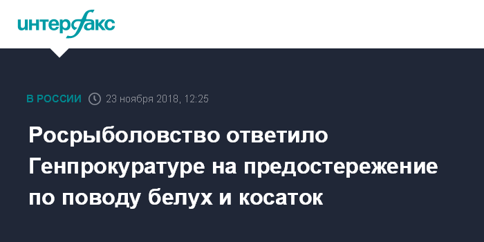 Росрыболовство ответило Генпрокуратуре на предостережение по поводу белух и косаток