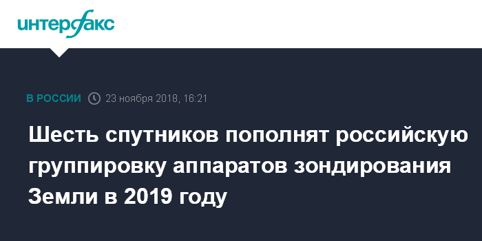 Москва. 23 ноября. INTERFAX.RU - Россия в 2019 году запустит на орбиту шесть спутников дистанционного зондирования Земли, сообщил на селекторном совещании в Москве начальник управления космического мониторинга Национального центра управления в кризисных ситуациях (НЦУКС) Василий Карташев.