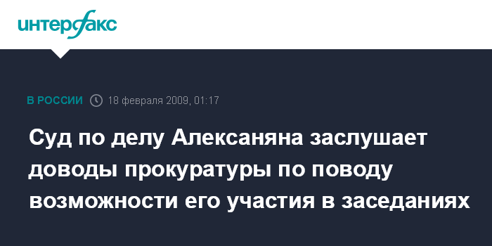 Из больницы В.Алексанян был выписан 12 января. Позже он сообщил "Интерфаксу", что врачи не рекомендовали ему участвовать в судебных заседаниях, однако сказал, что готов явиться в суд, если потребуется. "Но это, очевидно, представляет угрозу. Любая инфекция для меня может стать роковой", - добавил он.