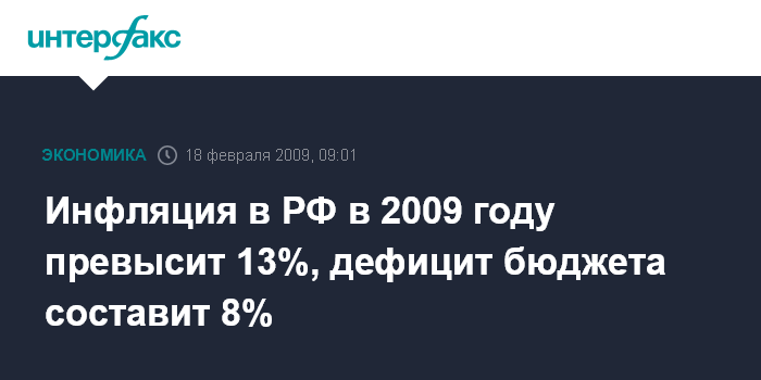 Инфляция в РФ в 2009 году превысит 13%, дефицит бюджета составит 8%