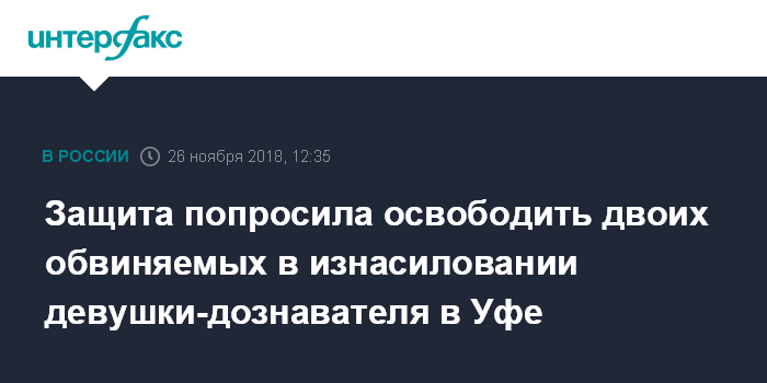 Москва. 26 ноября. INTERFAX.RU - Адвокаты двоих обвиняемых в изнасиловании девушки-дознавателя в Уфе экс-полицейских ходатайствуют об их освобождении из-под стражи и прекращении уголовного преследования своих клиентов.