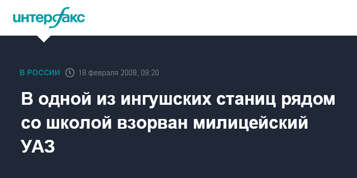 Москва. 18 февраля. INTERFAX.RU - В станице Троицкая Сунженского района Ингушетии в среду утром на автодороге во время движения автомобиля УАЗ неизвестные привели в действие взрывное устройство.