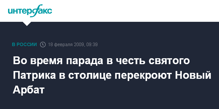 Во время парада в честь святого Патрика в столице перекроют Новый Арбат