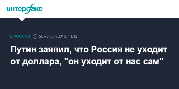 Путин заявил, что Россия не уходит от доллара, "он уходит от нас сам"