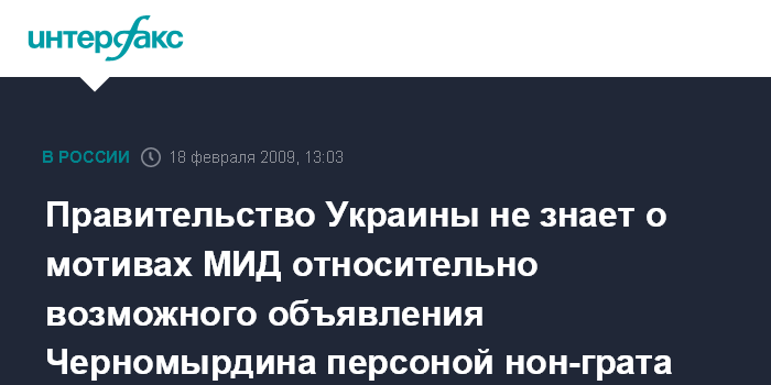 Правительство Украины не знает о мотивах МИД относительно возможного объявления Черномырдина персоной нон-грата