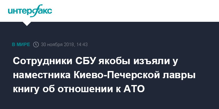Сотрудники СБУ якобы изъяли у наместника Киево-Печерской лавры книгу об отношении к АТО