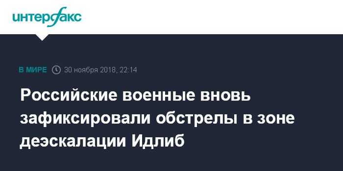 Москва. 30 ноября. INTERFAX.RU - Российский Центр по примирению враждующих сторон в Сирии продолжает фиксировать нарушения режима прекращения боевых действий со стороны незаконных вооруженных формирований, действующих в Идлибской зоне деэскалации.