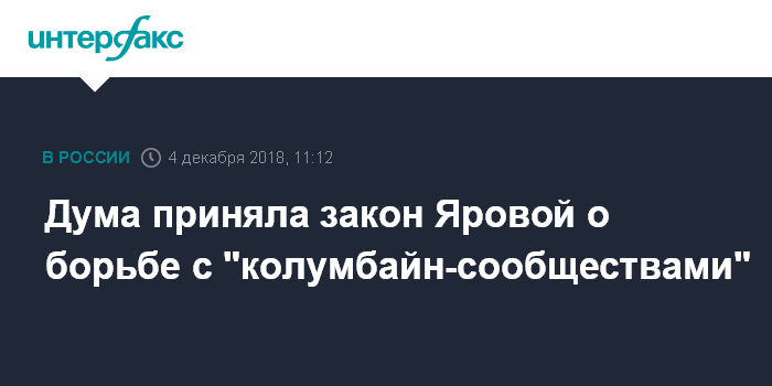 Дума приняла закон Яровой о борьбе с "колумбайн-сообществами"