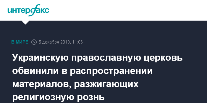 Украинскую православную церковь обвинили в распространении материалов, разжигающих религиозную рознь