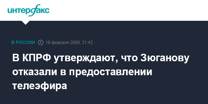 Москва. 18 февраля. INTERFAX.RU - ВГТРК отказалась предоставить лидеру КПРФ Геннадию Зюганову половину эфирного времени, которое в декабре прошлого года было у премьер-министра, лидера "Единой России" Владимира Путина в ходе его "прямой линии" с гражданами России.