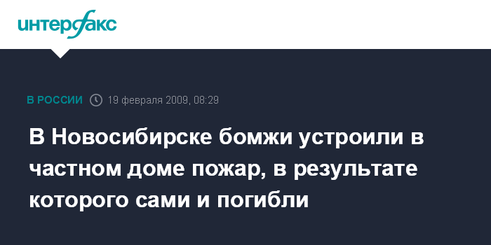Москва. 19 февраля. INTERFAX.RU - В Ленинском районе Новосибирска сгорел частный дом, погибли два человека без определенного места жительства, еще один госпитализирован в тяжелом состоянии.