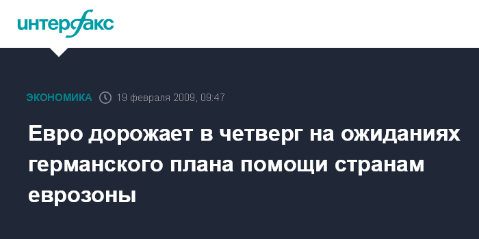 Москва. 19 февраля. INTERFAX.RU - Курс единой европейской валюты в четверг растет к доллару на ожиданиях, что канцлер ФРГ Ангела Меркель объявит о готовности Германии помочь другим странам еврозоны, чтобы предотвратить углубление финансового кризиса в регионе, сообщает агентство Bloomberg.