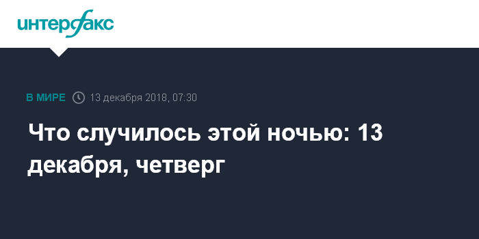 Москва. 13 декабря. INTERFAX.RU - Краткая сводка событий, произошедших к этому утру: