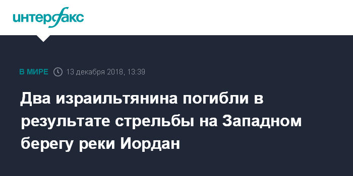 Москва. 13 декабря. INTERFAX.RU - Два израильтянина погибли в четверг на Западном берегу реки Иордан после того, как по ним открыли стрельбу, еще двое получили серьезные ранения, сообщает сайт израильской газеты Jerusalem Post.