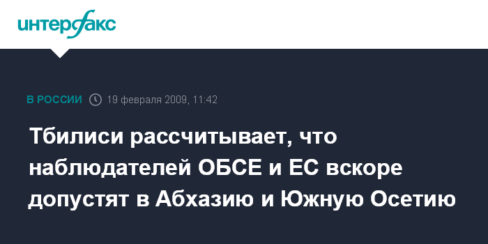 Тбилиси рассчитывает, что наблюдателей ОБСЕ и ЕС вскоре допустят в Абхазию и Южную Осетию