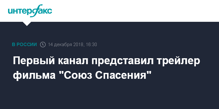 Москва. 14 декабря. INTERFAX.RU - Первый канал в пятницу представил трейлер фильма "Союз Спасения" о восстании декабристов. Как отметили в пресс-службе, этот день не случайно выбран для демонстрации трейлера - именно 14 декабря произошло восстание декабристов. Там отметили, что премьера фильма также состоится в годовщину восстания, но уже в следующем году.