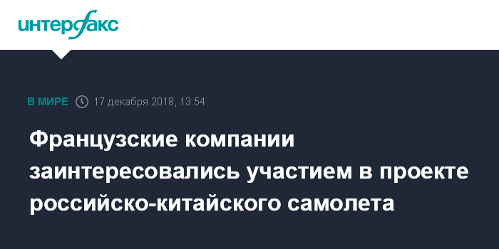 Французские компании заинтересовались участием в проекте российско-китайского самолета