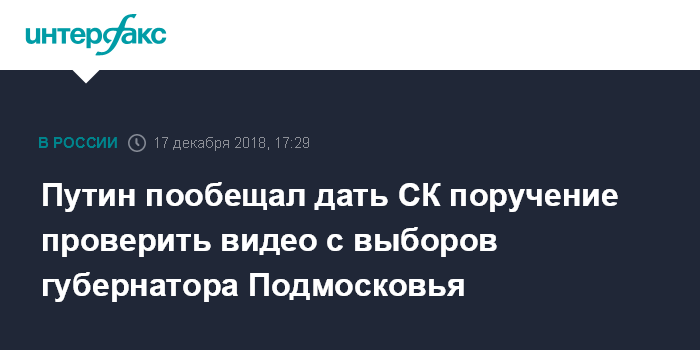Путин пообещал дать СК поручение проверить видео с выборов губернатора Подмосковья