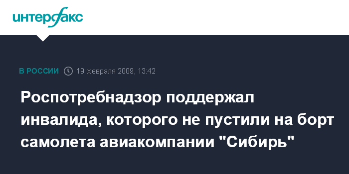 Роспотребнадзор поддержал инвалида, которого не пустили на борт самолета авиакомпании "Сибирь"