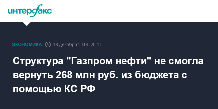 Структура "Газпром нефти" не смогла вернуть 268 млн руб. из бюджета с помощью КС РФ