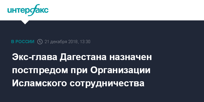 Экс-глава Дагестана назначен постпредом при Организации Исламского сотрудничества