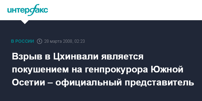 Цхинвали. 28 марта. ИНЕРФАКС - Власти Южной Осетии заявляют, что теракт в Цхинвали был направлен против генпрокурора республики, и предположительно за ним стоит официальный Тбилиси.