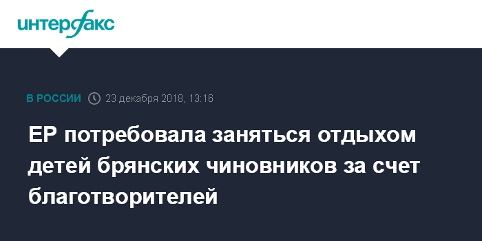 ЕР потребовала заняться отдыхом детей брянских чиновников за счет благотворителей