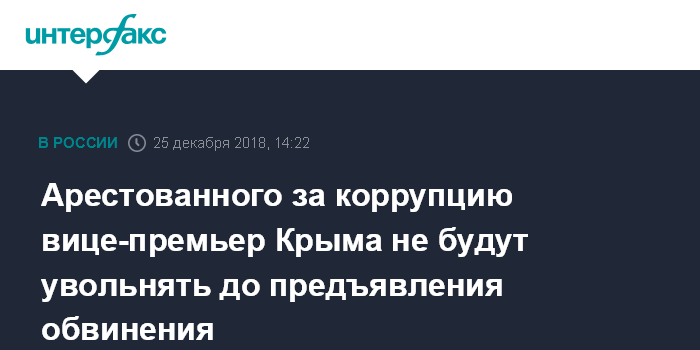 Москва. 25 декабря. INTERFAX.RU - Глава Крыма Сергей Аксенов ждет предъявления обвинения и решения суда по делу своего заместителя Виталия Нахлупина, который осенью был взят под стражу по подозрению в получении крупной взятки, и пока этого не будет, увольнять подчиненного не намерен.