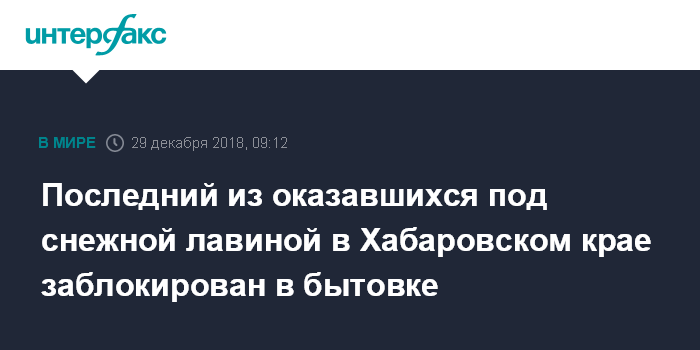 Последний из оказавшихся под снежной лавиной в Хабаровском крае заблокирован в бытовке