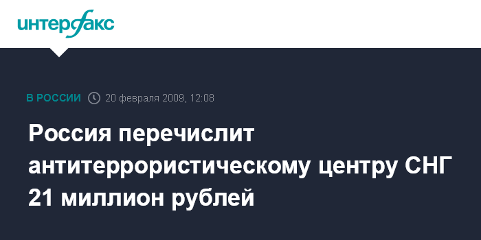 Россия перечислит антитеррористическому центру СНГ 21 миллион рублей
