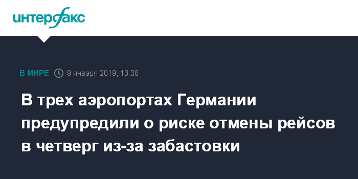 Москва. 9 января. INTERFAX.RU - Сотрудники служб безопасности в трех крупных аэропортах в Германии - в Дюссельдорфе, Кёльне и Штутгарте - в четверг планируют объявить забастовку, сообщает в среду агентство Associated Press.