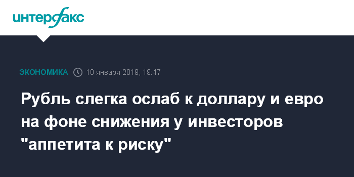 Рубль слегка ослаб к доллару и евро на фоне снижения у инвесторов "аппетита к риску"