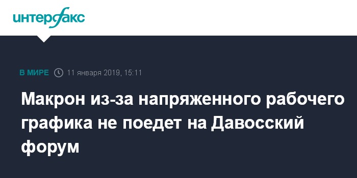 Москва. 11 января. INTERFAX.RU - Президент Франции Эммануэль Макрон не поедет на Всемирный экономический форум в швейцарский Давос, сообщает в пятницу газета Le Figaro со ссылкой на Елисейский дворец.